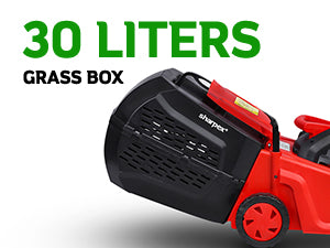 A 30-liter detachable grass storage box for easy handling and disposal of garden waste like clippings and leaves.