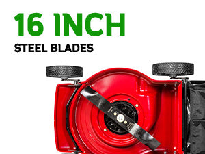 16" heat-treated alloy steel blades stay sharp longer, providing a clean, professional finish without fraying your lawn.