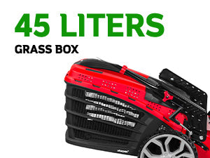 A 45-liter detachable grass storage box for easy handling and disposal of garden waste like clippings and leaves.