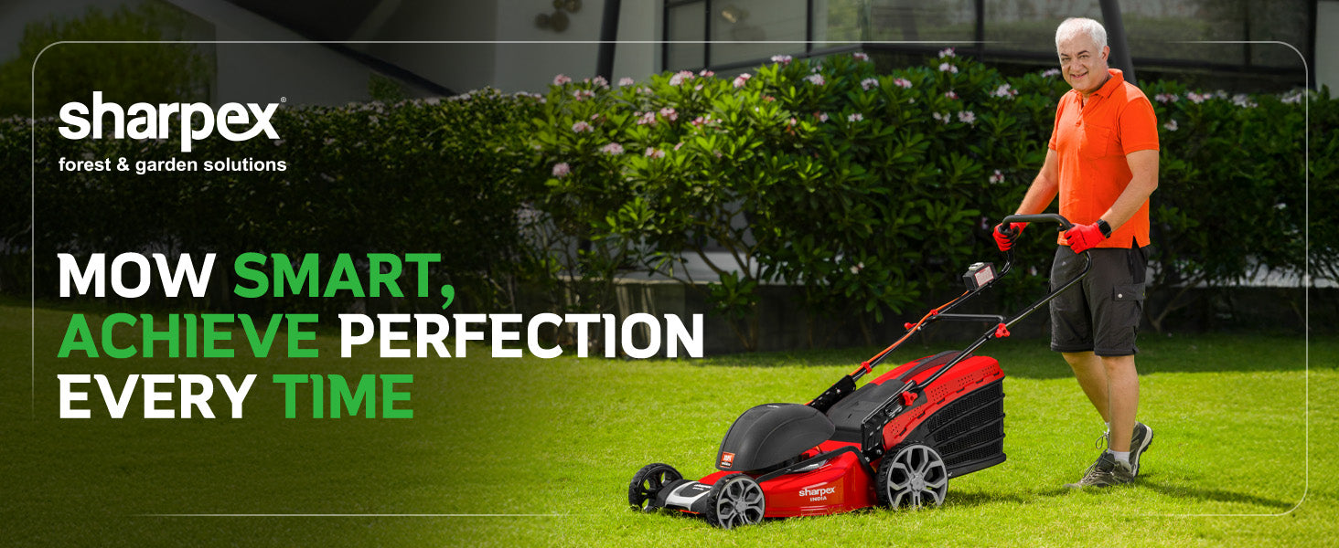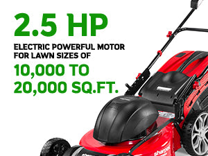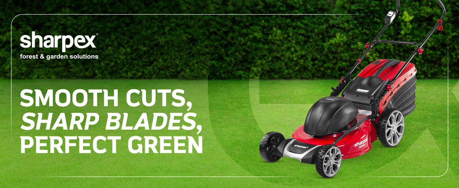 Efficient Lawn Care The Sharpex Electric Lawn Mower, featuring a 2.5 HP motor, is suitable for lawns ranging from 2500 to 20000sq. ft., offering durable lawn care.