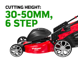 Versatile Cutting Height The cutting height is adjustable from 30mm to 50 mm with three settings, allowing for precise trimming based on lawn needs.