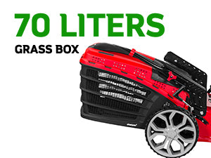Spacious Grass Box A 70-liter detachable grass storage box for easy handling and disposal of garden waste like clippings and leaves.